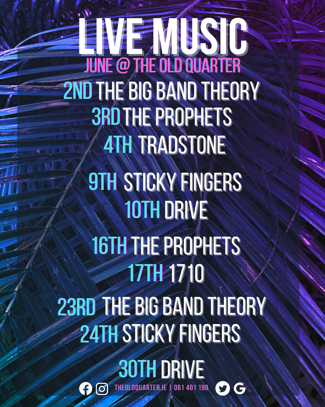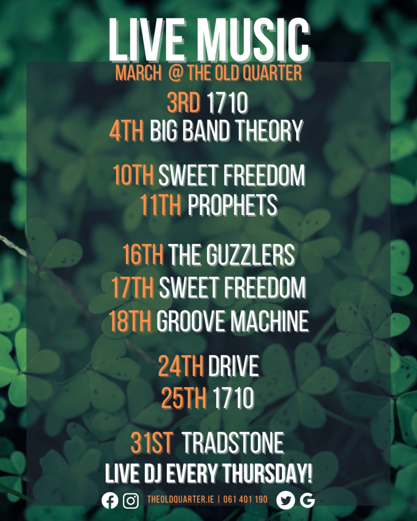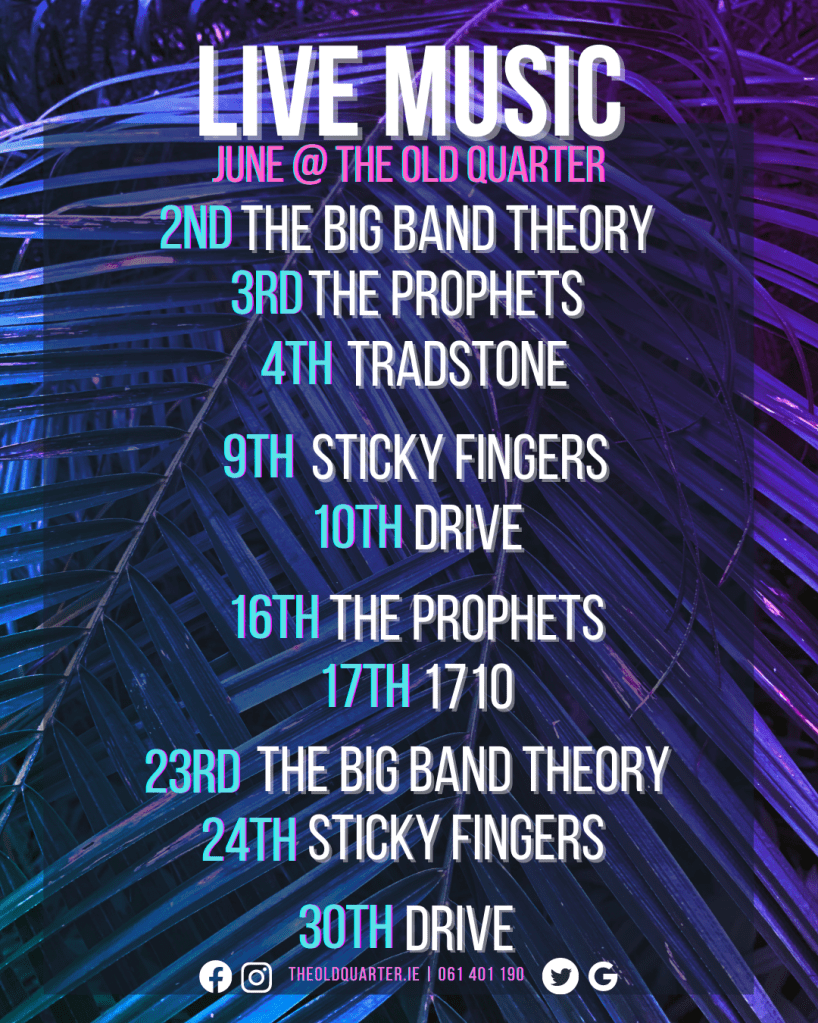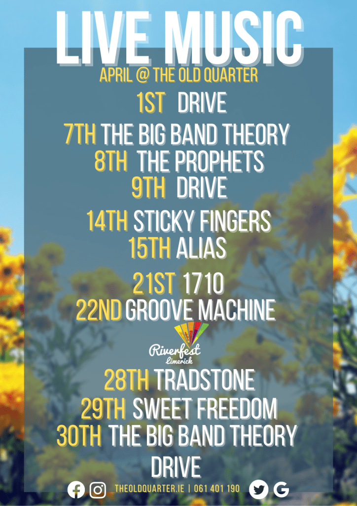 There was no point in creating content without data behind it to back up the reasoning. I learned a lot about video and social media in Bookstr.Inc so I started out creating more video content for the businesses. I used it to show off the live music that was in the Old Quarter every weekend. This was my longest campaign. Every month I would create A1 and A5 posters of the band line-up for advertising. The same design, I turned into graphics for the TVs and Tills in the business. I also pinned the graphic to all social media pages so it was the first thing customers saw. I made Google and Facebook events so anyone looking for an event in Limerick city would see it and maybe attend.