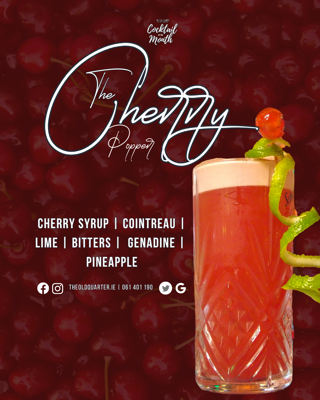 Another long-running, multi-media campaign I did was for the Cocktail of the Month. The head bartender would create a special cocktail each month that complimented the time of year, a product we were trying to show off or that they had on their mind. I created A5 posters, online graphics, advertising for the screens as well as a video of them making the cocktail. The video content was very effective on Instagram, gaining several hundred to thousand views per video. The staff reported back on the amounts of said cocktail sold on the busy days, showing me that it translated to sales.